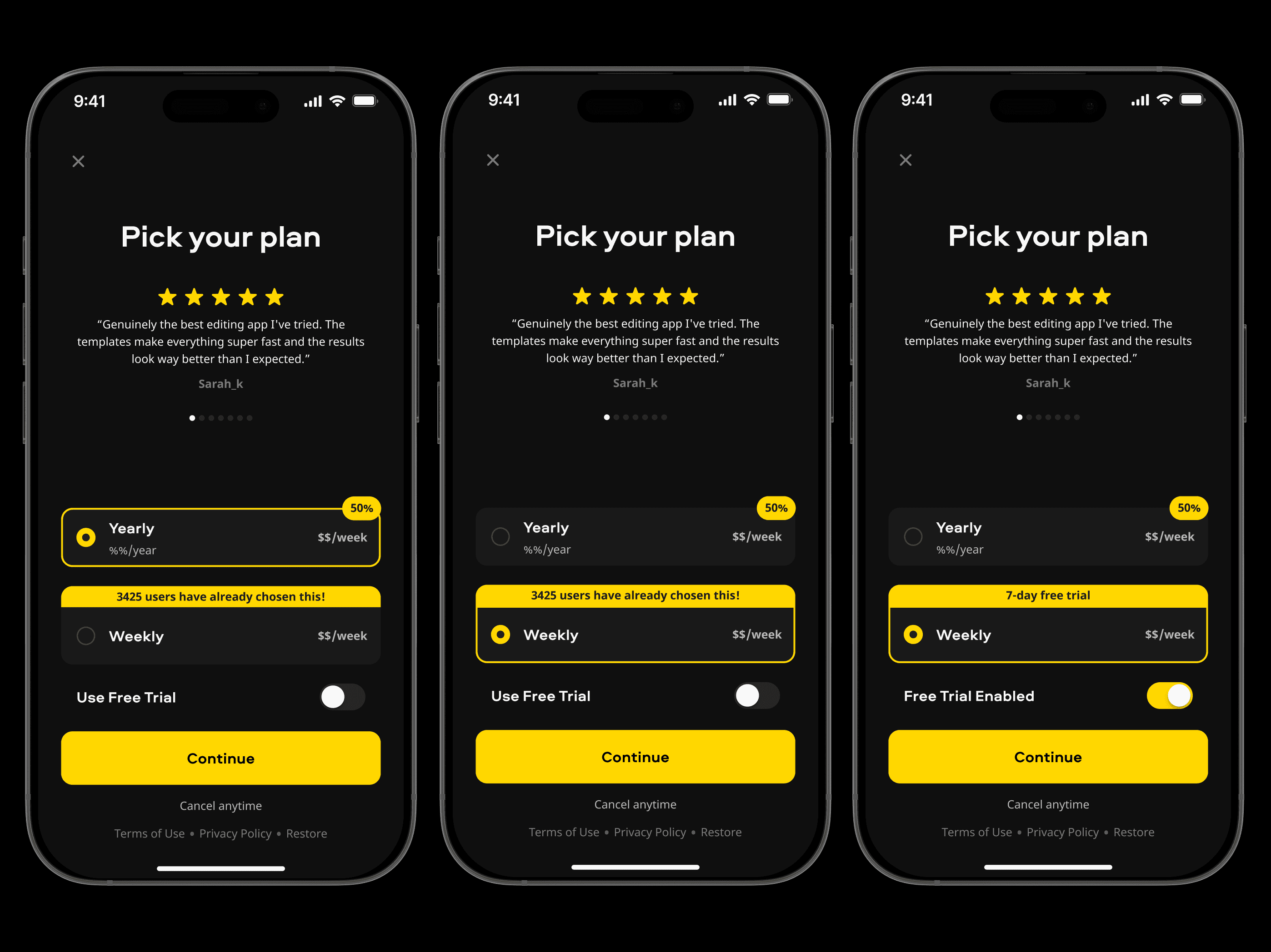 hypotheses, benchmarking, UX/UI, no-code (apphud)